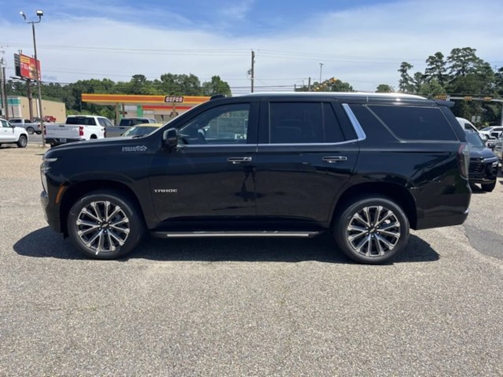 Black 2025 Chevrolet Tahoe High Country 4WD 10-Speed Automatic with Overdrive EcoTec3 6.2L V8 4WD, Black Leather.